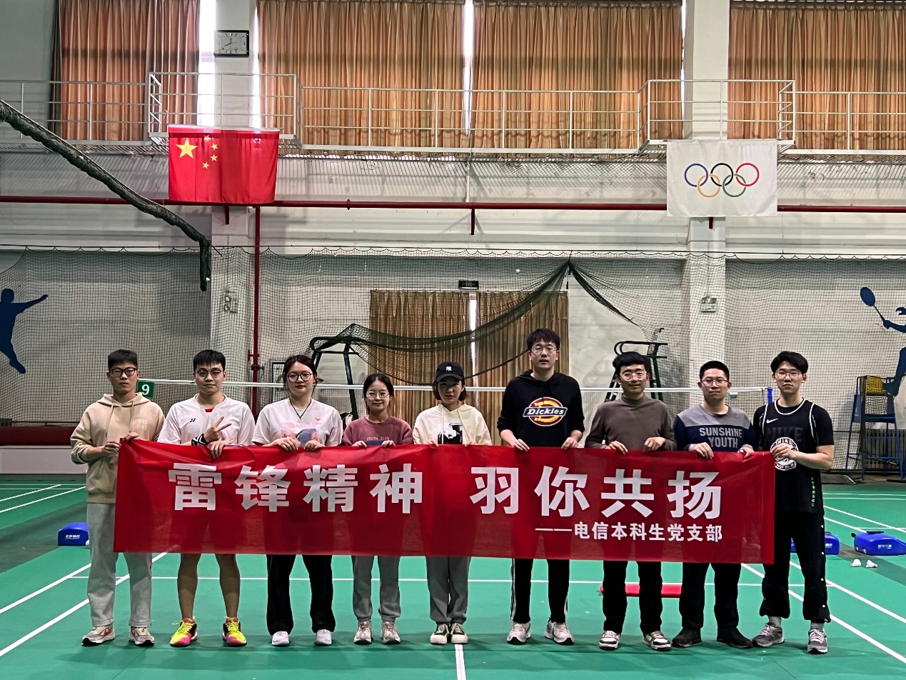 为深入学习雷锋精神,通过开展志愿服务活动,发扬为人民服务的传统美德,传播志愿服务理念,弘扬社会文明新风,宣传“奉献、友爱、互助、进步”的志愿精神。 2023年3月19日,电信本科生党支部于小球馆开展“雷锋精神 羽你共扬”主题活动,本次活动由组织委员雒鹏鑫同志带领支部八名同志参与打扫羽毛球场地。