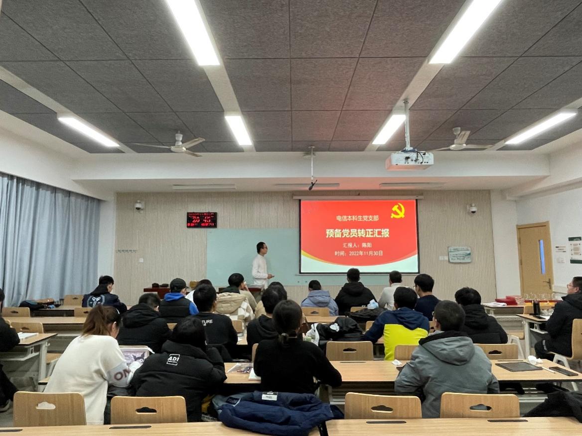 根据学院党员发展相关工作安排,按照《陕西省发展党员工作规程(试行)》规范要求,电子信息工程本科生党支部于2022年12月1日晚7:30在N8111开展关于讨论确定接受文晨等5名同志为正式党员的党员大会,会议由支部组织委员秦泽倩同志主持,支部全体党员、预备党员参加会议。