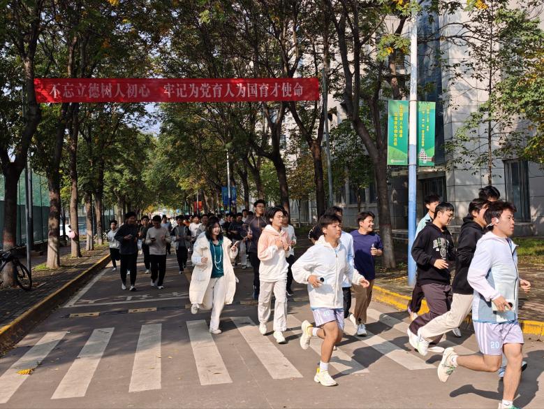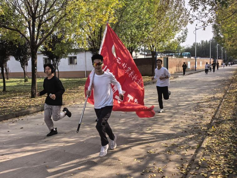 随着发令口号,同学们如离弦之箭冲出起点,赛场气氛瞬间点燃。长跑队的队员高举机电学院院旗,带领同学们奋力奔跑,由志愿者组成的助威团以掌声和呐喊为选手加油。