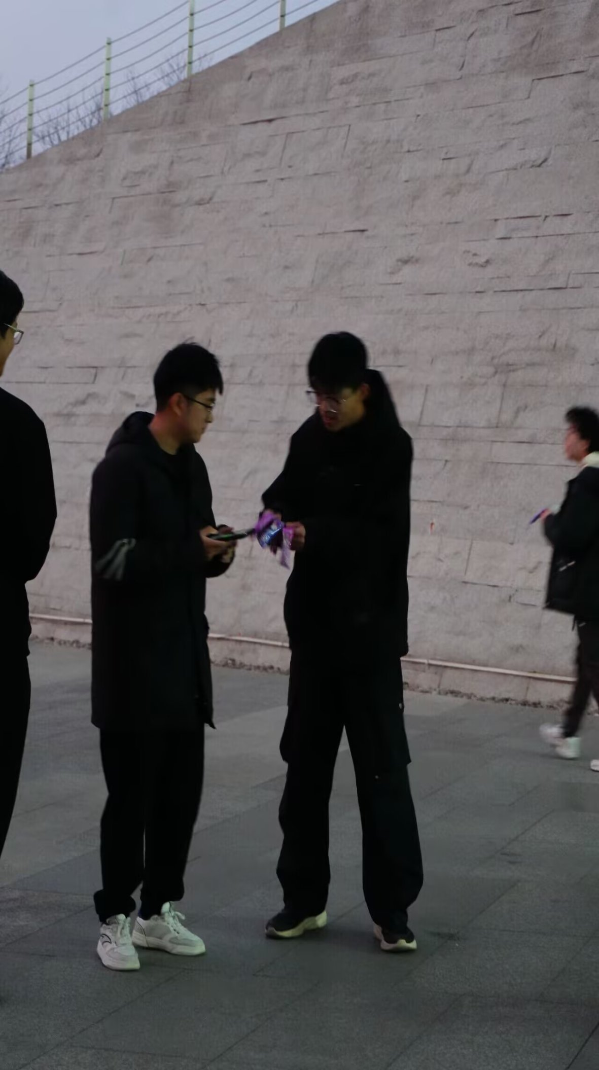 图书馆外的广场上,几位考研学子围站在一起,其中两人正小心翼翼地交接着手写的考研祝福卡片,紫色的卡片在夜色中格外亮眼,像是一颗跳动的暖心。他们低头交流的模样,褪去了备考的焦虑,多了份同窗间的温情。考研从来都不是孤军奋战,哪怕是简单的卡片传递,也藏着“我们一起加油”的默契。身旁路过的同学步履匆匆,而这一隅的温暖互动,却成了冲刺路上最动人的风景。这些手写的祝福,是陌生人的善意,是同窗的期许,更是让考研人带着底气奔赴考场的力量源泉。考研从不是孤身奋战,这份手手相传的祝福,是同窗间的鼓励,也是考研路上温暖的羁绊,让冲刺的旅途少了孤单,多了并肩的力量。