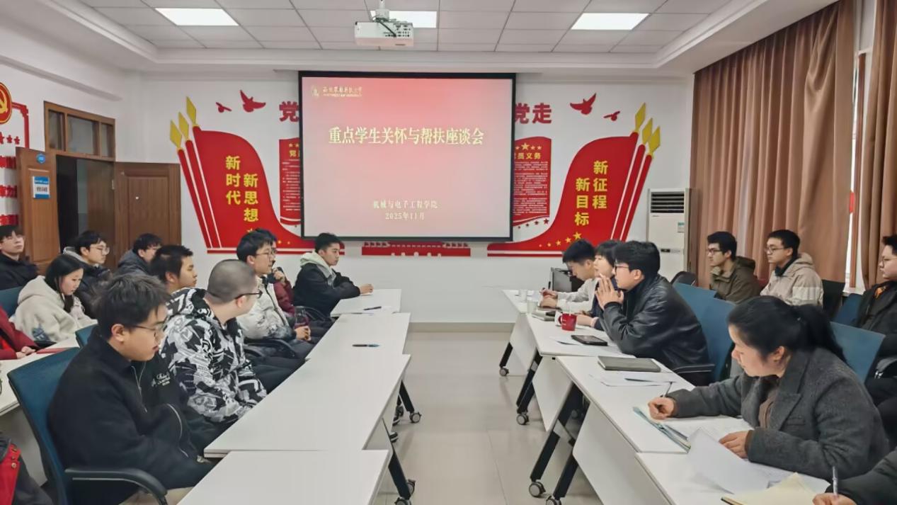 本次座谈会作为机械与电子工程学院“精准帮扶行动计划”的关键环节,以搭建师生沟通桥梁为核心目标,深入识别学生具体学业困难,进而制定个性化帮扶方案,有效降低学业预警风险。学院始终将学生成长置于首位,构建起“学业预警—精准对接—持续帮扶—跟踪反馈”的全流程育人机制,通过教学办、辅导员和学生骨干的三级协同,为学生提供学业辅导、心理关怀和就业规划等全方位支持,切实助力每一位学生顺利完成学业目标。