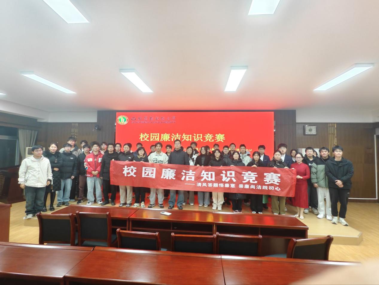 12月29日,由机电学院学生会主办,葡萄酒学院、水土保持科学与工程学院、食品科学与工程学院、动物医学院学生会联合协办的校园廉洁知识竞赛在机电楼9326成功举办。本次比赛以3人团队形式参赛,部分跨学院组队的队伍踊跃参与,通过“廉洁知识闯关”的趣味形式,深入学习廉洁知识,共同营造崇廉尚洁的校园氛围。