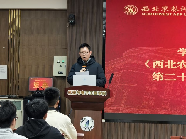随后,院团委副书记秦一郎上台,对《关于开展机械与电子工程学院第三期“青马工程”大学生骨干培训班的通知》进行了全面、细致的解读。他从培训背景、培养目标、课程设置、考核要求、实践安排等多个维度,向学员们清晰阐述了本次培训班的核心内容与整体规划。秦一郎强调,本次“青马工程”培训将始终坚持“学用相长、知行合一”的原则,既注重理论知识的系统性传授,帮助学员筑牢马克思主义思想根基,又强化实践能力的针对性培养,通过专题讲座、研讨交流、社会实践、志愿服务等多种形式,助力机电青年在学思践悟中提升政治判断力、政治领悟力、政治执行力,切实练就服务同学、奉献社会的过硬本领。