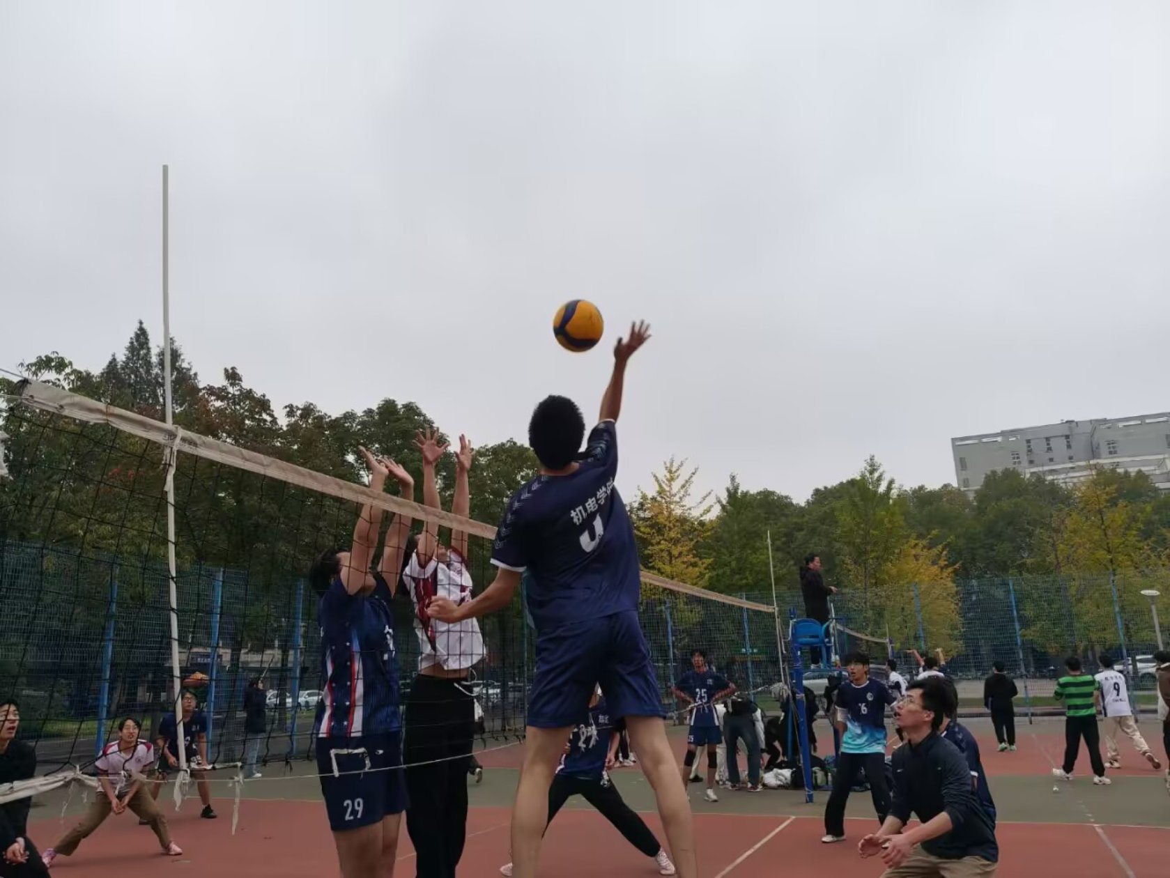 本次比赛共有来自全校各学院的多支队伍参赛,竞争激烈。机电学院排球队的新生们在比赛中以初生牛犊不怕虎的精神,展现了扎实的基本功和良好的竞技状态。从小组赛到淘汰赛,他们每一场都全力以赴,以高度的热情和坚韧的毅力应对挑战。无论是精准的发球、巧妙的传球,还是有力的扣杀和顽强的拦网,都充分展现了机电学子积极向上、永不言弃的精神风貌。