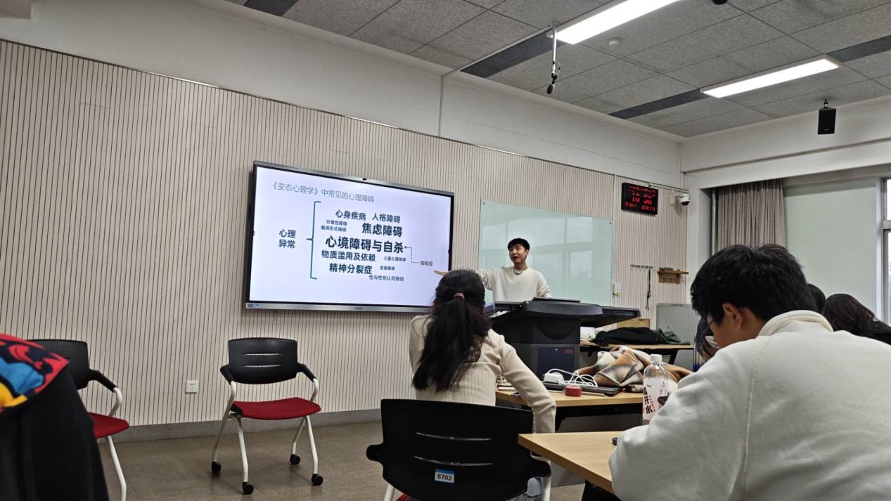 破冰游戏结束后,同学们热情高涨,李浩宇趁热打铁,围绕“自我体验”“人生价值”两大模块展开讲解心理知识,通过数个创意思考活动,依次从自我认识、团体意识和个人价值追求三个层面引导成员们发现自己的内心,探索自我最真实的需要和想法,让成员们在思考中领悟心理知识的内涵。