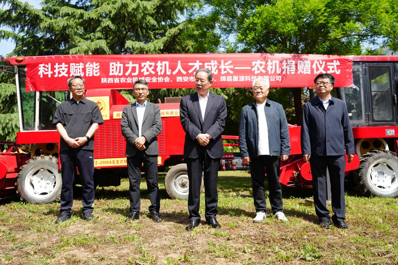下午14:00,智能农机捐赠仪式在机电学院农机实验室门前温情启幕。西安市慈善会联合陕西省农业机械安全协会、绛县星源科技有限公司,向学院慷慨捐赠2台具备国际先进水平的自走式秸秆收获打捆机,为学院教学实训与科研创新注入新动能。我院76级院友、西安市慈善会会长朱智生,副会长侯学东,我院76级院友、陕西省农机安全协会首席专家行学敏,绛县星源科技有限公司代表,学院党委书记王雄,院长黄玉祥、党委副书记张静、副院长张卫国及师生代表共同见证了这一暖心时刻。