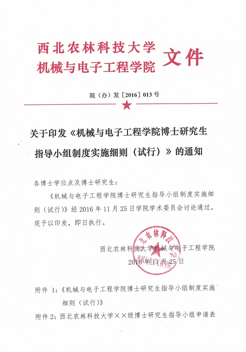 院(办)发[2016]013号关于印发《机械与电子工程学院博士研究生指导小组制度实施细则(试行)》的通知