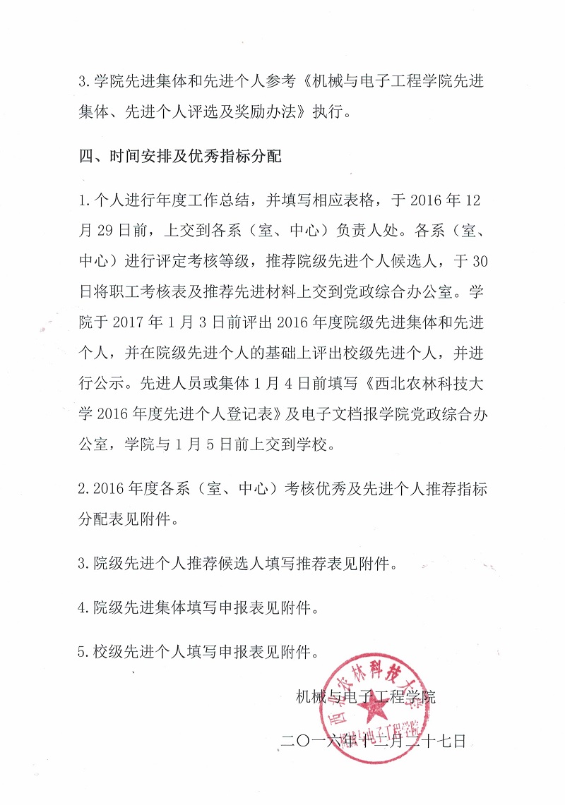 院(办)发[2016]014号关于开展2016年度教职工考核及先进评选的通知